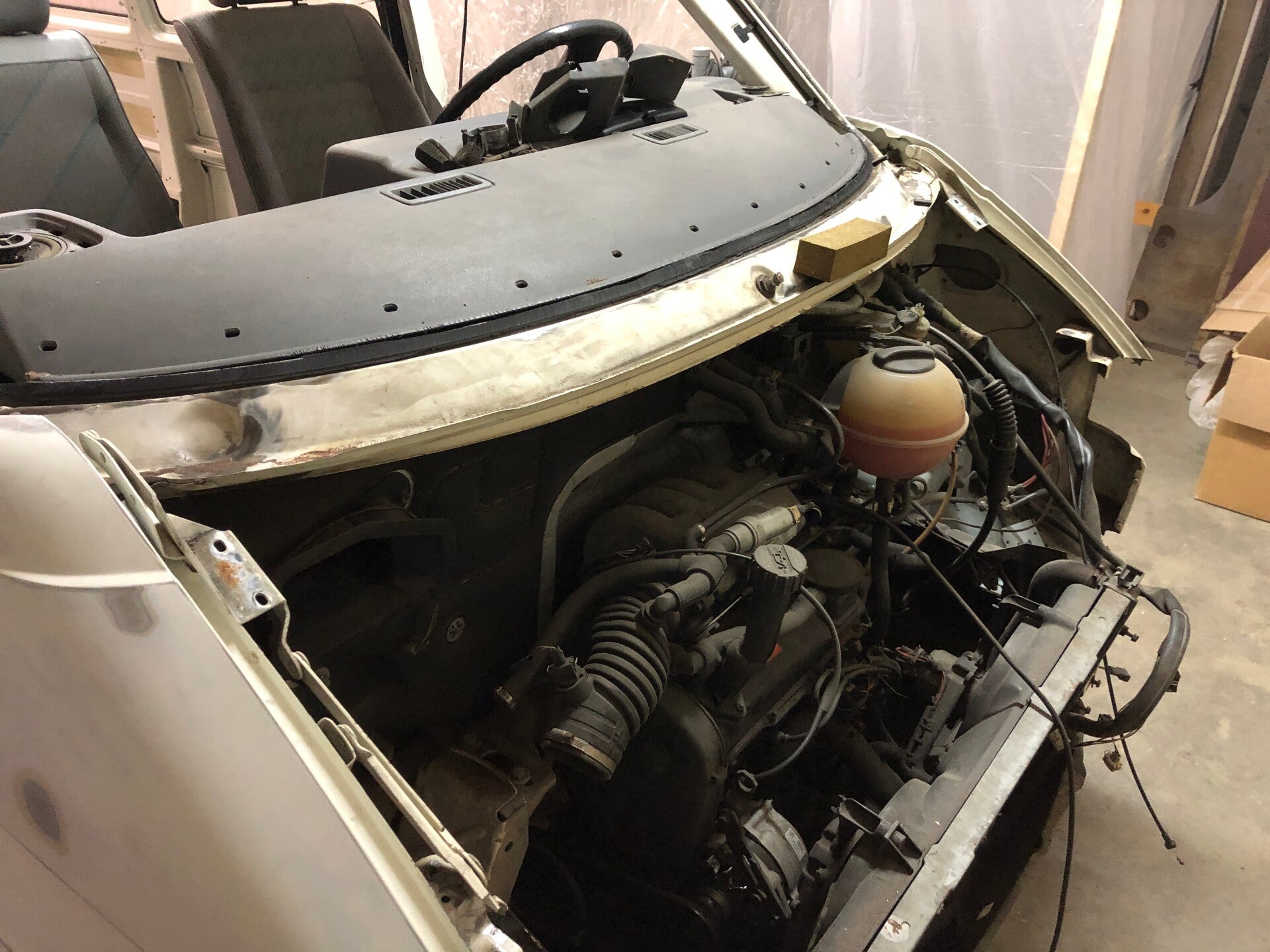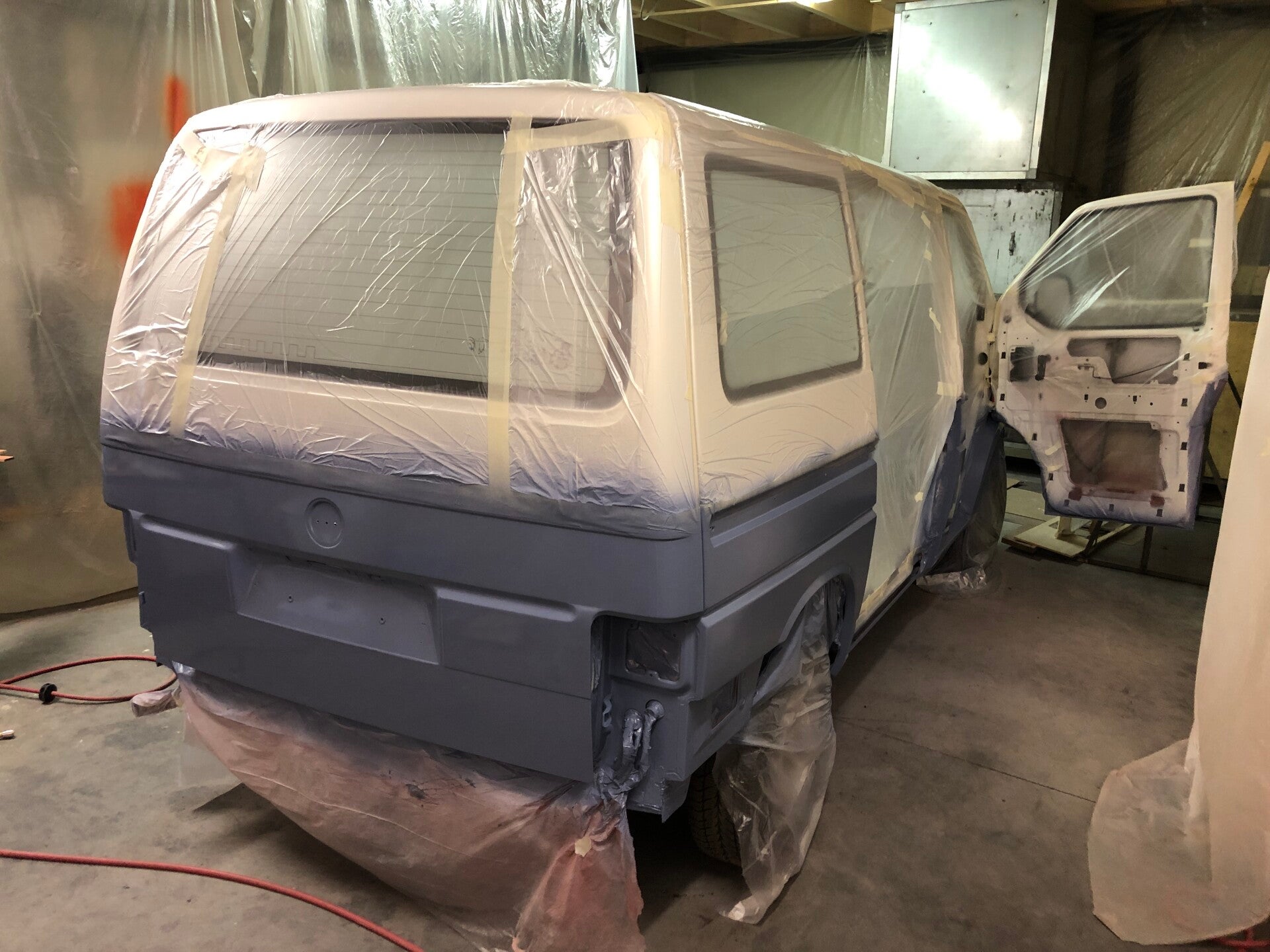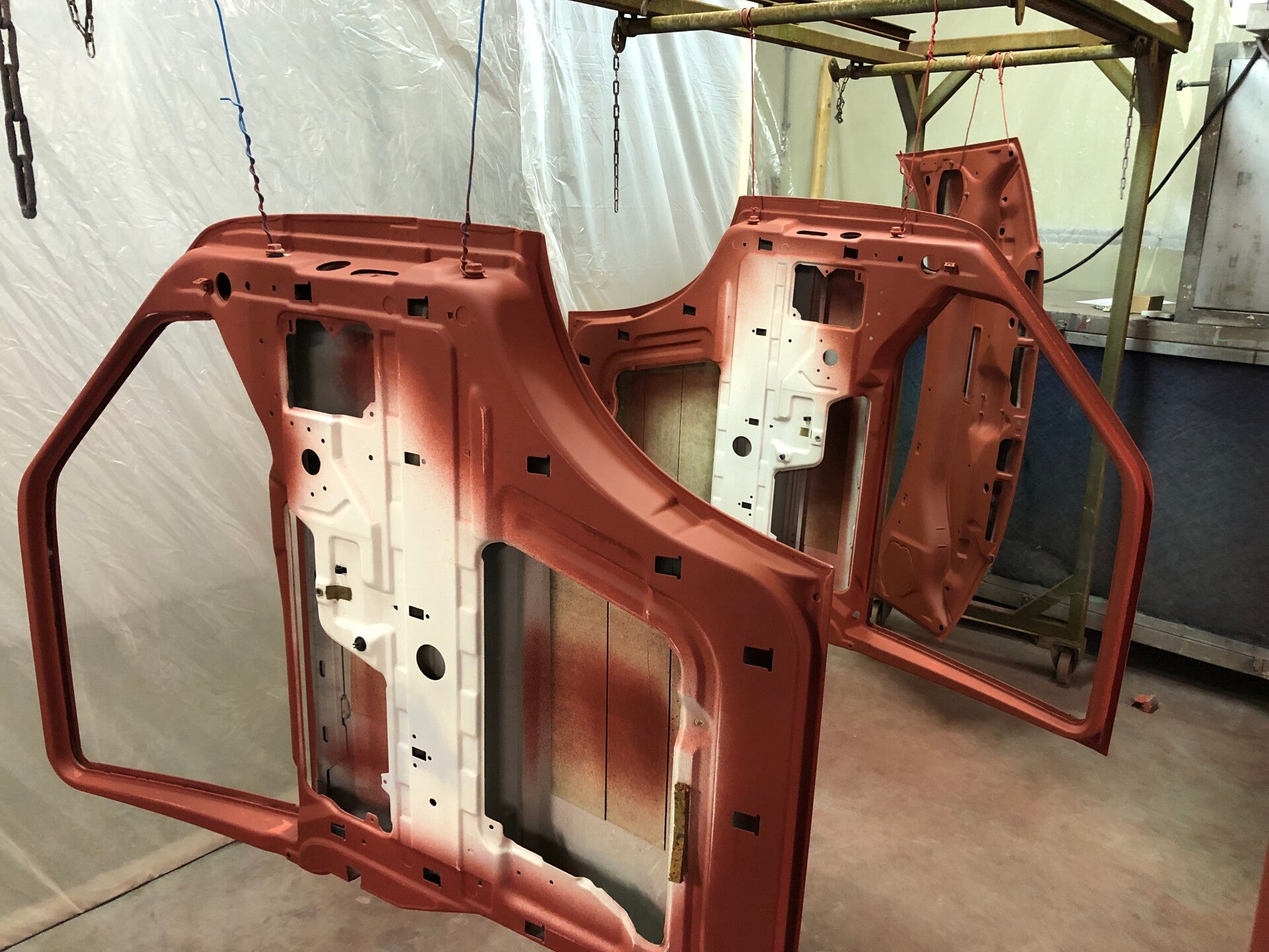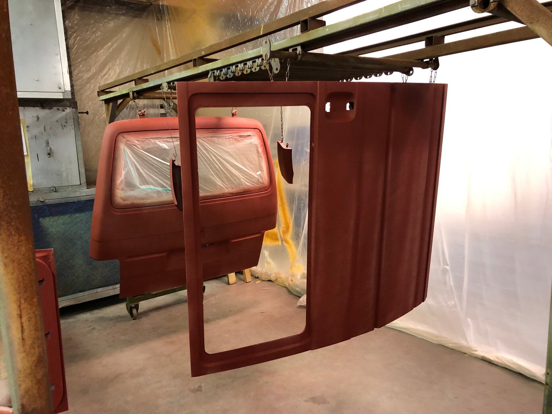 de bus is helemaal kaal gemaakt, behandeld en gespoten met een matte 2 componenten lak.